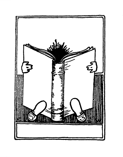 fig. 3 No reason to have included this again -- except it's a great image, with a Winsor McCay-esque tuft of hair protruding over the book's cover.